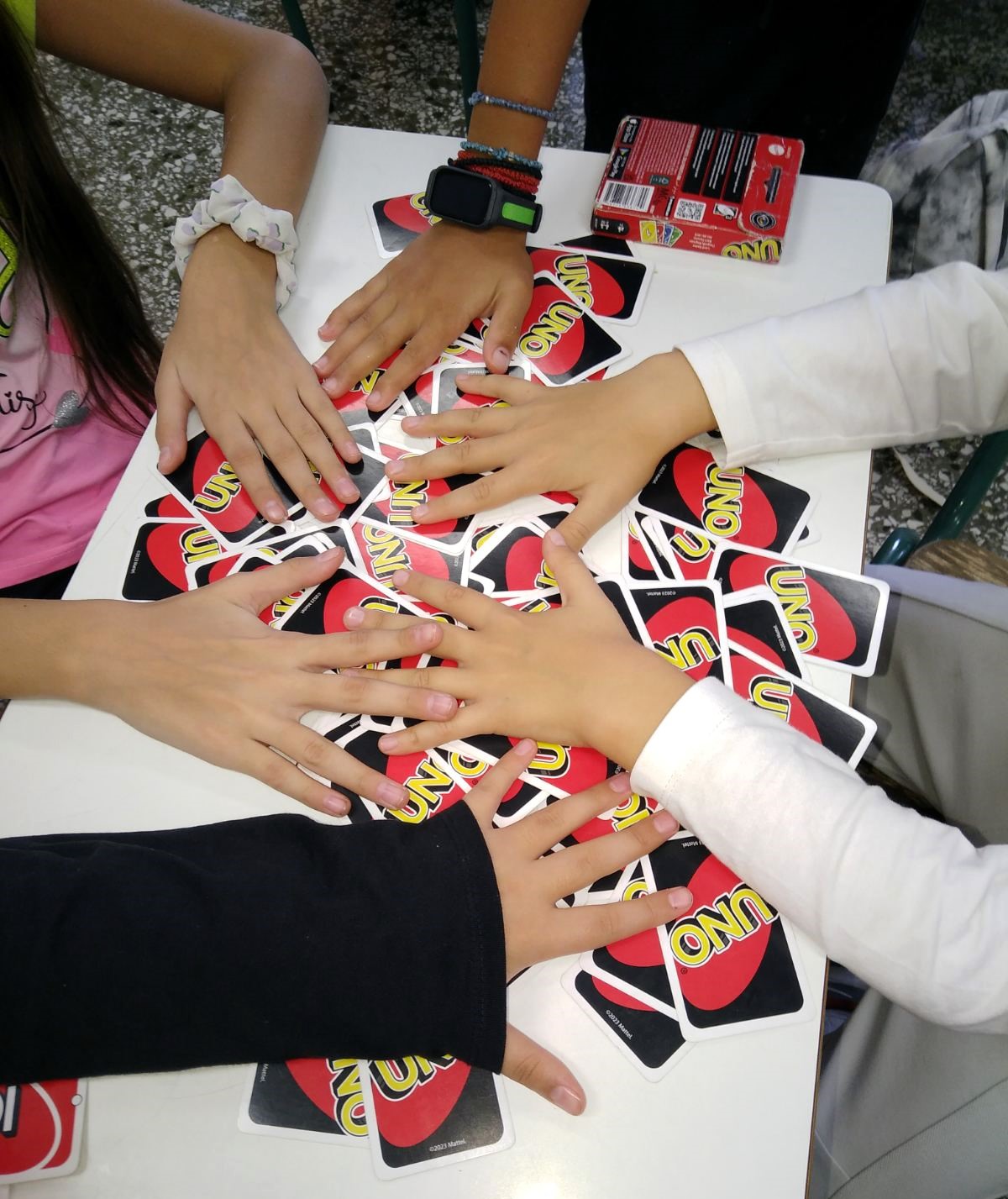 Με πολύ ενδιαφέρον τα παιδιά έμαθαν να παίζουν αυτό το παραδοσιακό παιχνίδι! Στην αρχή πετάγανε γόμες, ζάρια κ.ά. μέχρι που φέραμε αγορασμένο υλικό από πλαστικό !